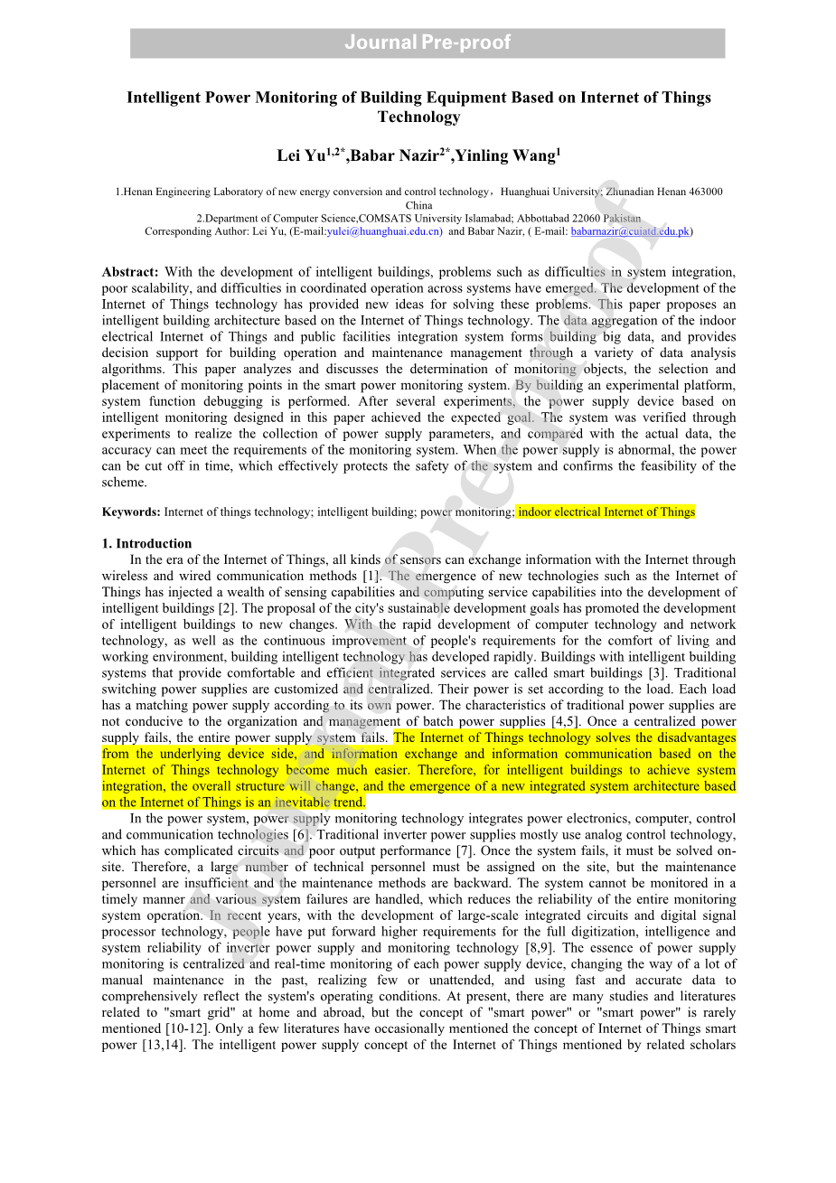Lei Yu1,2*,Babar Nazir2*,Yinling Wang1