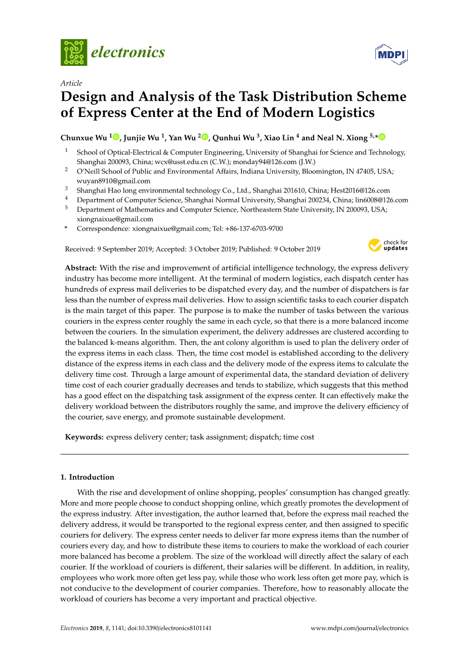 摘要:随着人工智能技术的兴起与发展,快递行业也呈现出智能化发展的趋势。在现代物流的末端,每个快递中心每天都有数百件快递在等待派送,但是快递员的数量却远远少于待派送快件的数量。本文的主要研究目标是如何科学有效的为派送员分配每天的派送任务,能够让各个快递员之间的派送任务在每个周期内大致相同,从而使快递员之间的收入更加平衡。在仿真实验中,首先根据平衡k-means聚类算法对派送地址进行聚类,其次使用蚁群算法来计划每个类别中快递物品的交货顺序,然后根据各类快递商品的配送距离和配送方式建立时间成本模型,计算配送时间成本。通过对大量实验数据的分析发现,各快递公司交货时间成本的标准偏差逐渐减小并趋于稳定,这表明本方法对快递中心的任务分配具有良好的影响。本方法能够为快递员之间安排大致相同的工作量,能有效的提高快递员送货效率、节约能源、促进可持续发展。