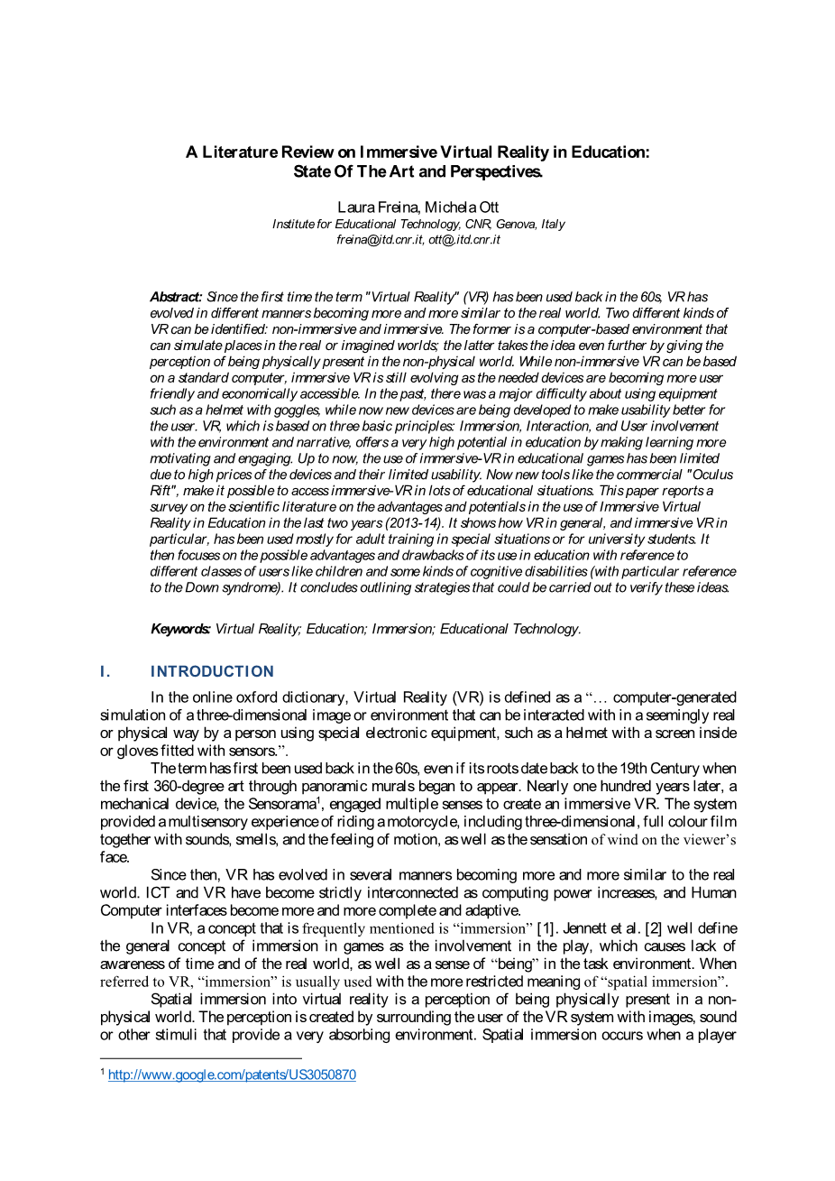 关于沉浸式虚拟现实教育的文献综述:最新的技术以及观点。外文翻译资料