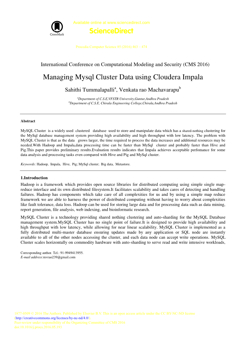MySQL Cluster是一个广泛使用的集群数据库,用于存储和处理数据,该数据库具有MySql数据库管理系统的无共享集群,可提供高可用性和高吞吐量,且延迟低。 MySQL Cluster的问题在于,随着数据的增长,处理数据所需的时间会增加,并且可能需要额外的资源。使用Hadoop和Impala时,数据处理时间可能比MySql集群快,并且可能比Hive和Pig快。 本文提供了初步的结果。评估结果表明,与Hive,Pig和MySql相比,Impala在某些数据分析和处理任务方面也达到了可接受的性能。