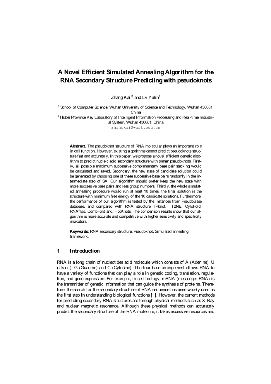 关键词:RNA二级结构,Pseudoknot,模拟退火框架