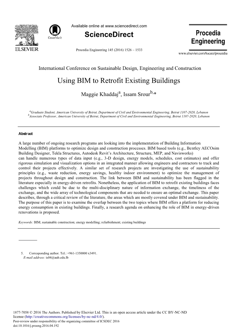 本文探讨了BIM与可持续发展之间的关系,这是建筑行业的另一个新兴概念。可持续发展倡导有效利用自然资源,同时保持低运营成本和废物产生[5]。具体而言,本文阐述了现有建筑中能源驱动的翻新,这是可持续发展与BIM之间的重叠领域。然而,部署BIM工具以实现可持续的翻新目标遇到了严峻的挑战。因此,本文为未来的研究议程提供了建议,以促进BIM工具用于现有建筑的能源驱动改造。