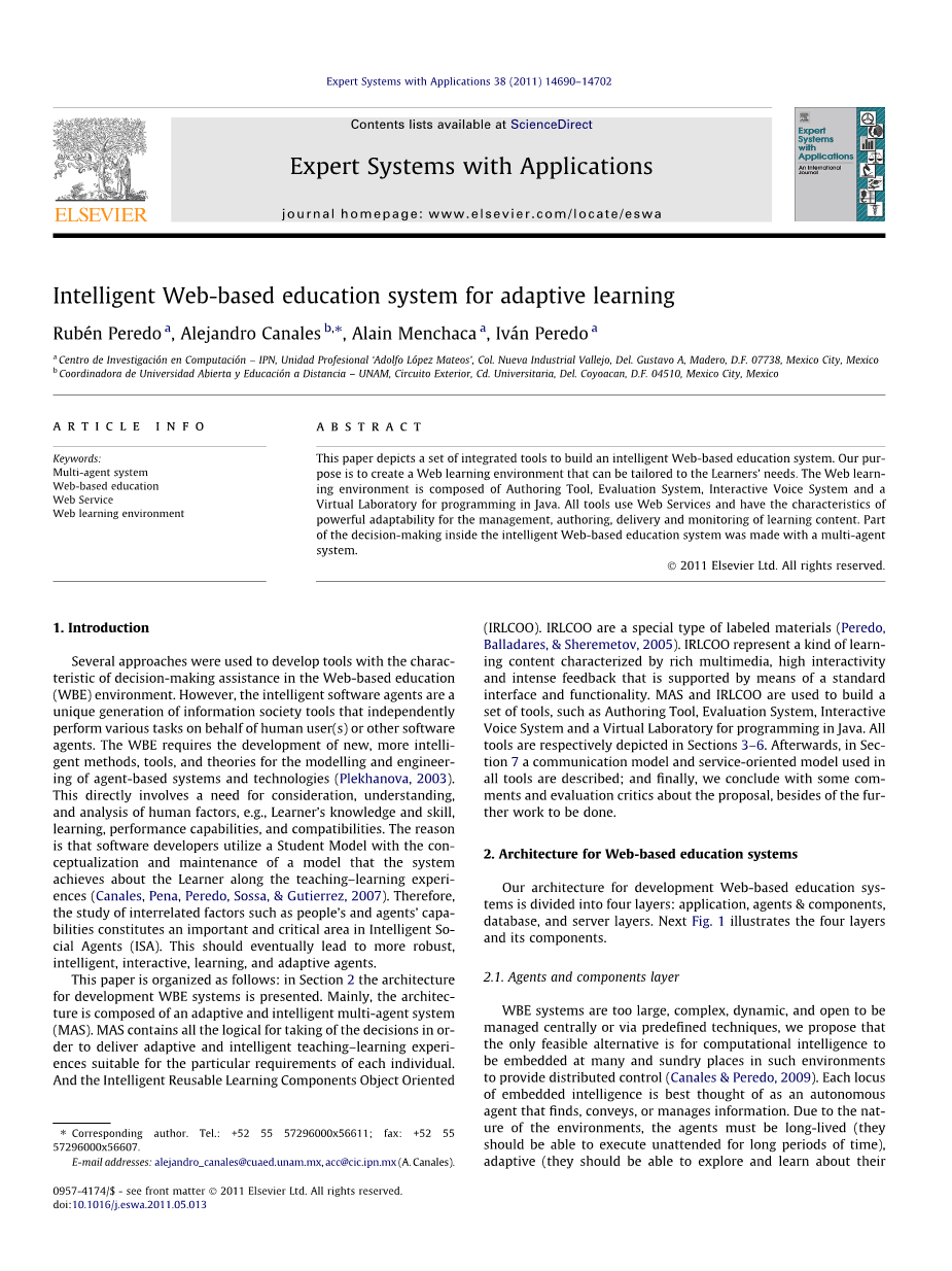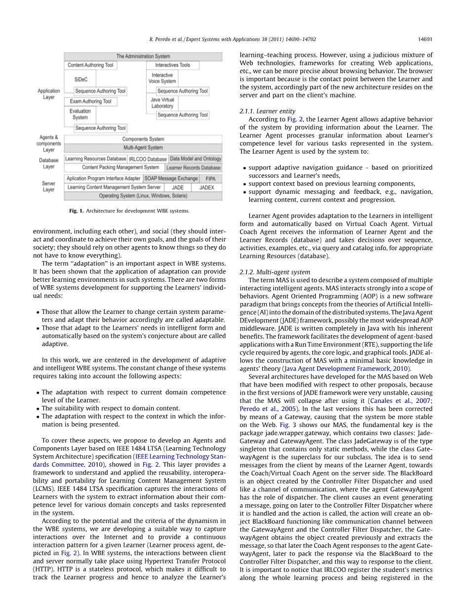主要的体系结构是由一个自适应的、智能的多代理系统(MAS)组成。MAS包含所有符合逻辑的决策,以提供适合每个人的特殊要求的适应性和智能教与学的经验。面向对象的智能可重用学习组件(IRLCOO),是一种特殊类型的标记材料(普雷托,雷斯,舍列梅捷夫 2005年)。IRLCOO代表了一种丰富的多媒体,高交互性和强烈的反馈意见的学习内容特色。