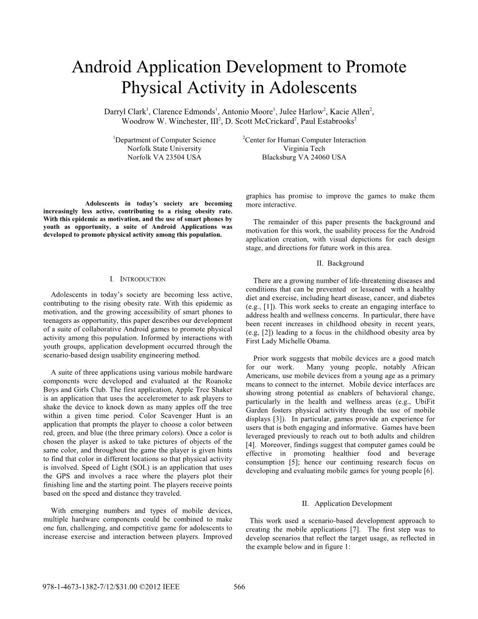 Roanoke Boys and Girls俱乐部评估了一套三个由各种移动硬件组成的应用程序。第一个应用程序,Apple Tree Shaker,要求玩家振动设备利用加速度计在给定的时间内尽可能多寄到书上的苹果。Color Scavenger Hunt是第二个,这是一个让玩家在红色,绿色和蓝色(三原色)中选择的程序,一旦玩家选择了一种颜色,就要求玩家选择一个相同颜色的物体图像,在整个游戏过程中,玩家需要根据系统提示亲自行动来查找该物体所在的位置。Speed of Light (SOL),程序使用全球定位系统,是一场由玩家亲自绘制路线图的竞赛,玩家的得分由自己的速度和距离决定。