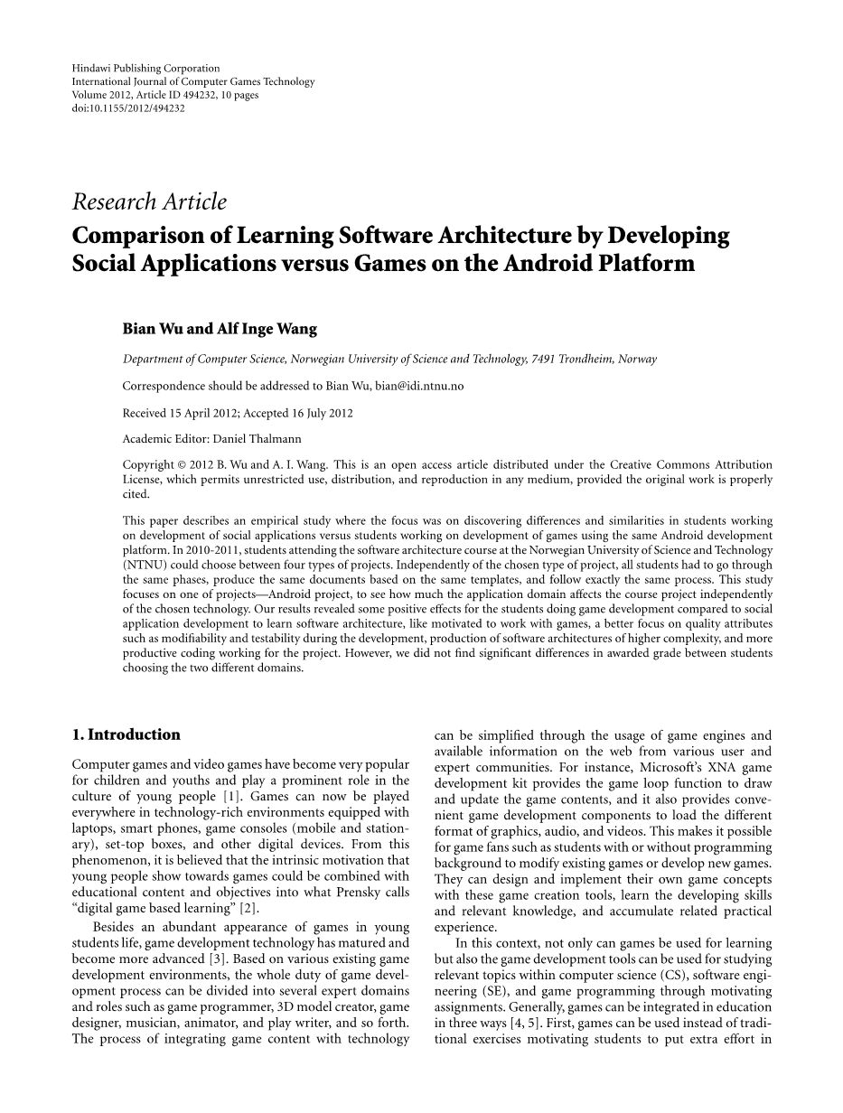 版权所有@2012 Bian Wu和Alf Inge Wang。