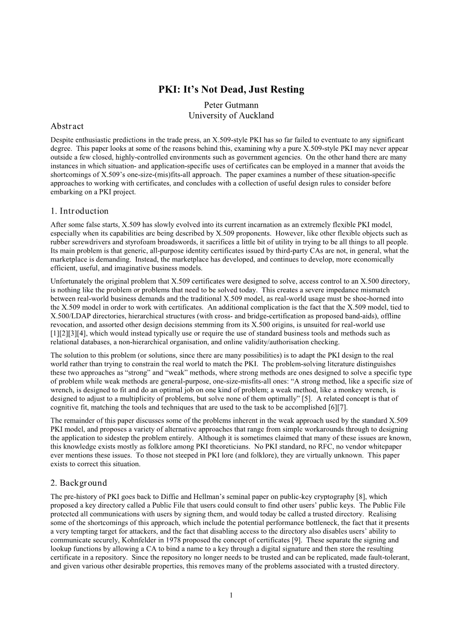 尽管在贸易媒体上有热情的预测,但X.509风格的PKI到目前为止还没有达到任何显著的程度。本文着眼于这背后的一些原因,研究为什么纯粹的X.509风格的PKI可能永远不会出现在一些封闭的、高度受控的环境中,比如政府机构。另一方面,在许多情况下,证书的使用情况和应用程序的特定用途可以避免X.509的一种(错误)方法的缺点。本文研究了一些特定情况下证书的使用方法,并总结了在开始PKI项目之前要考虑的一些有用的设计规则。