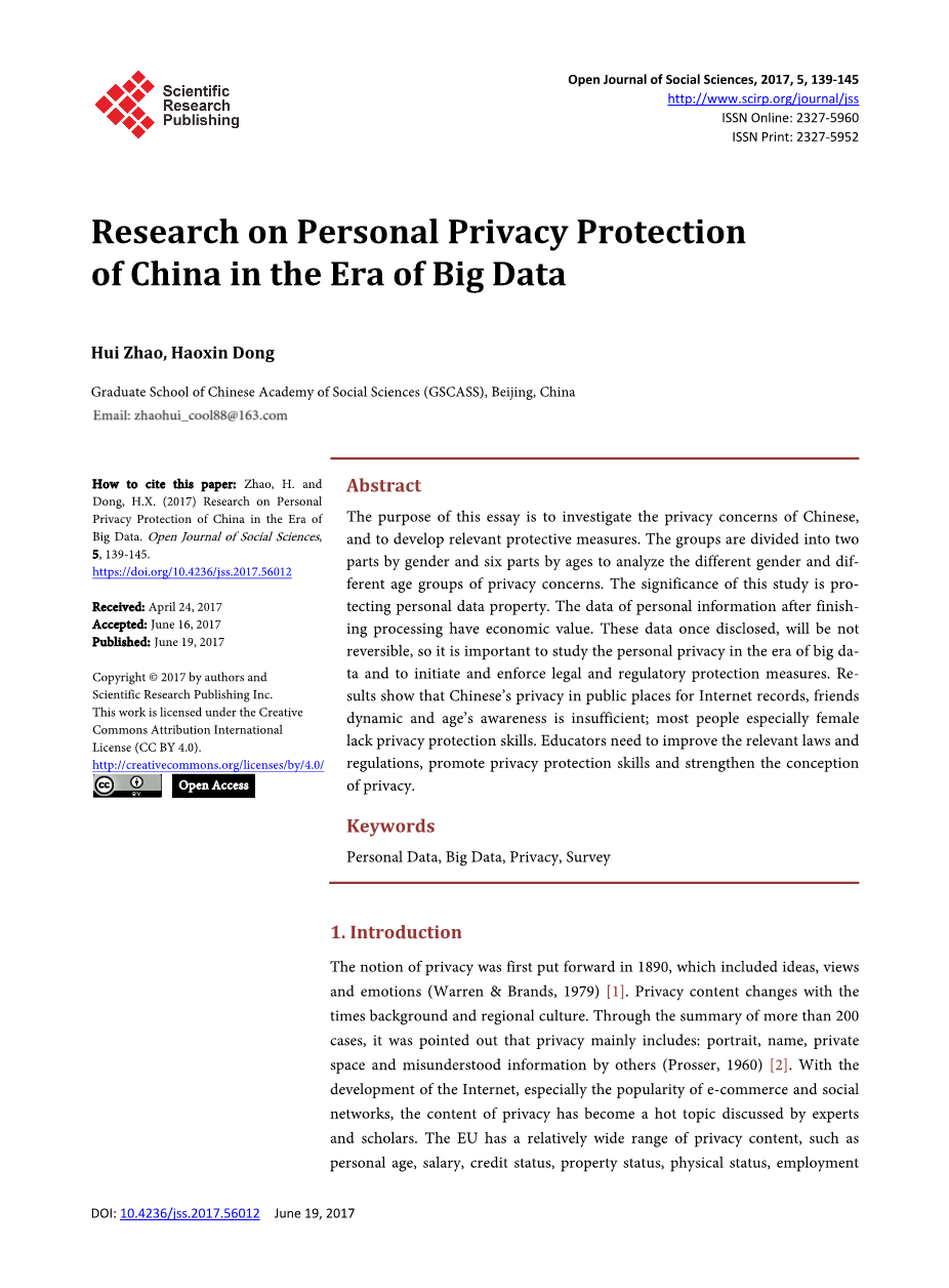 本文旨在研究大数据时代个人隐私的内容,提出保护个人隐私的策略,这需要大量的数据。以往的研究没有使用问卷调查法。