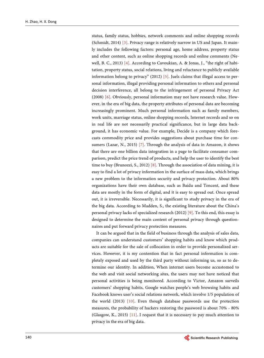 7. Lazar, N. (2015) The Big Picture: Big Data and Privacy. Chance, 28, 39-42.