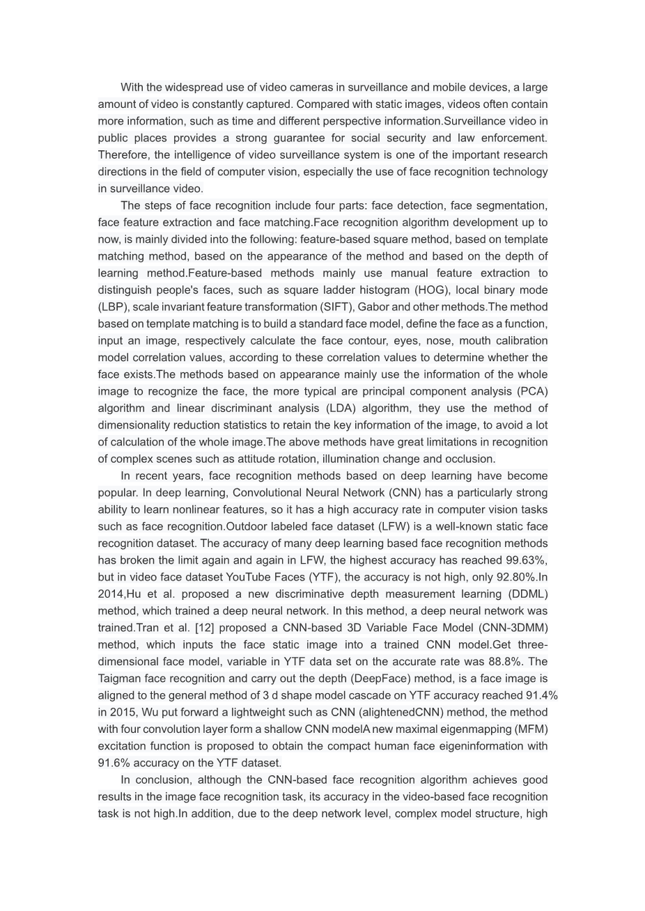 基于opencv的人脸识别系统设计外文翻译资料 2023-02-07 09:30:55 英语原文共 3 页,剩余内容已隐藏,支付完成后下载完整资料 资料编号:[259322],资料为PDF文档或Word文档,PDF文档可免费转换为Word 原文和译文剩余内容已隐藏,您需要先支付 30元 才能查看原文和译文全部内容!立即支付 发小红书推广免费获取该资料资格。点击链接进入获取推广文案即可: Ai一键组稿 | 降AI率 | 降重复率 | 论文一键排版 PREVIOUS NEXT 您可能感兴趣的文章 管理信息系统外文翻译资料 老年人的营养和营养需求外文翻译资料 试卷自动生成系统的设计与实现外文翻译资料 JSP的技术发展历史外文翻译资料 微软.NET平台的介绍外文翻译资料 设置一个Servlet和JSP环境外文翻译资料 Java Servlet外文翻译资料 基于递归神经网络的会议识别语言建模外文翻译资料 基于社区结构的推荐算法和用户的信任外文翻译资料 边缘路径绑定:一种不太模糊的边缘绑定方法外文翻译资料