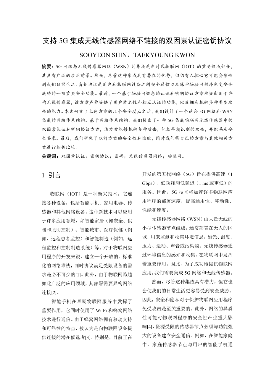 支持5G集成无线传感器网络不链接的双因素认证密钥协议外文翻译资料 2023-02-19 20:34:48 英语原文共 13 页,剩余内容已隐藏,支付完成后下载完整资料 英语译文共 21 页,剩余内容已隐藏,支付完成后下载完整资料 资料编号:[19979],资料为PDF文档或Word文档,PDF文档可免费转换为Word 原文和译文剩余内容已隐藏,您需要先支付 30元 才能查看原文和译文全部内容!立即支付 发小红书推广免费获取该资料资格。点击链接进入获取推广文案即可: Ai一键组稿 | 降AI率 | 降重复率 | 论文一键排版 PREVIOUS NEXT 您可能感兴趣的文章 管理信息系统外文翻译资料 老年人的营养和营养需求外文翻译资料 试卷自动生成系统的设计与实现外文翻译资料 JSP的技术发展历史外文翻译资料 微软.NET平台的介绍外文翻译资料 设置一个Servlet和JSP环境外文翻译资料 Java Servlet外文翻译资料 基于递归神经网络的会议识别语言建模外文翻译资料 基于社区结构的推荐算法和用户的信任外文翻译资料 边缘路径绑定:一种不太模糊的边缘绑定方法外文翻译资料
