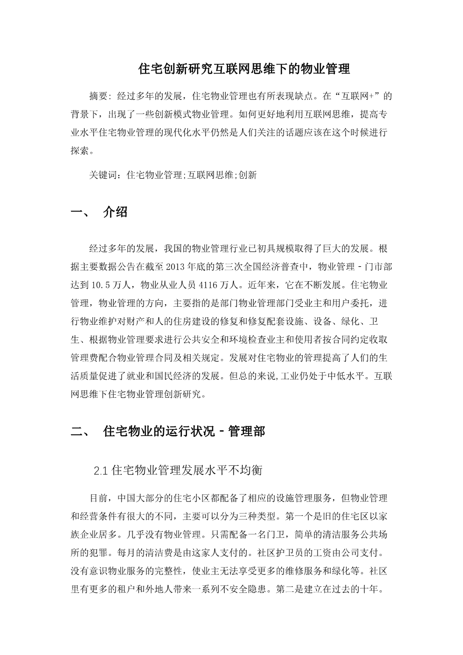 住宅创新研究互联网思维下的物业管理外文翻译资料 2023-03-02 14:57:01 英语原文共 11 页,剩余内容已隐藏,支付完成后下载完整资料 英语译文共 7 页,剩余内容已隐藏,支付完成后下载完整资料 资料编号:[405503],资料为PDF文档或Word文档,PDF文档可免费转换为Word 原文和译文剩余内容已隐藏,您需要先支付 30元 才能查看原文和译文全部内容!立即支付 发小红书推广免费获取该资料资格。点击链接进入获取推广文案即可: Ai一键组稿 | 降AI率 | 降重复率 | 论文一键排版 PREVIOUS NEXT 您可能感兴趣的文章 管理信息系统外文翻译资料 老年人的营养和营养需求外文翻译资料 试卷自动生成系统的设计与实现外文翻译资料 JSP的技术发展历史外文翻译资料 微软.NET平台的介绍外文翻译资料 设置一个Servlet和JSP环境外文翻译资料 Java Servlet外文翻译资料 基于递归神经网络的会议识别语言建模外文翻译资料 基于社区结构的推荐算法和用户的信任外文翻译资料 边缘路径绑定:一种不太模糊的边缘绑定方法外文翻译资料