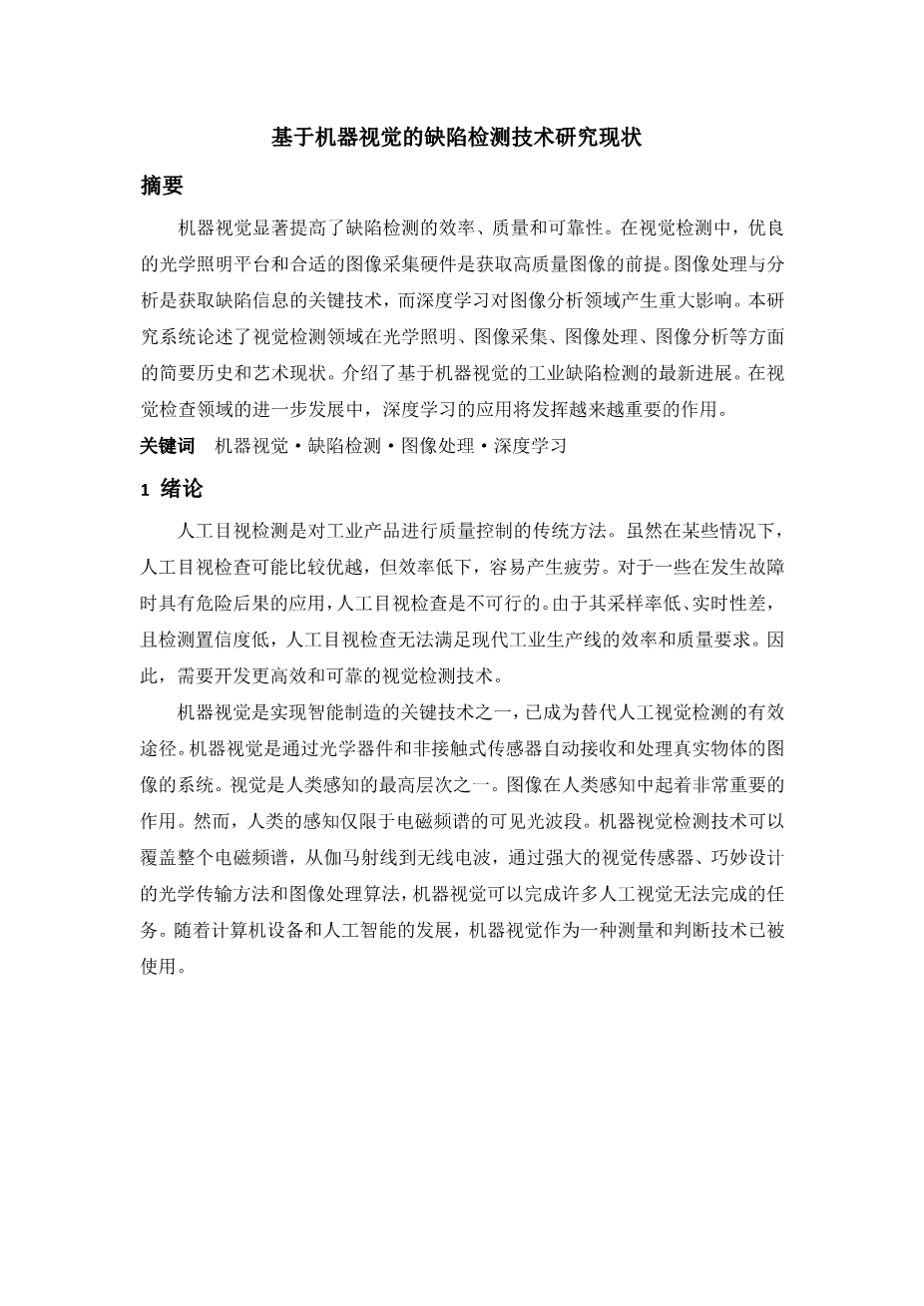 基于机器视觉的缺陷检测技术研究现状外文翻译资料 2023-04-08 22:32:00 英语原文共 31 页,剩余内容已隐藏,支付完成后下载完整资料 英语译文共 10 页,剩余内容已隐藏,支付完成后下载完整资料 资料编号:[590332],资料为PDF文档或Word文档,PDF文档可免费转换为Word 原文和译文剩余内容已隐藏,您需要先支付 30元 才能查看原文和译文全部内容!立即支付 发小红书推广免费获取该资料资格。点击链接进入获取推广文案即可: Ai一键组稿 | 降AI率 | 降重复率 | 论文一键排版 PREVIOUS NEXT 您可能感兴趣的文章 管理信息系统外文翻译资料 老年人的营养和营养需求外文翻译资料 试卷自动生成系统的设计与实现外文翻译资料 JSP的技术发展历史外文翻译资料 微软.NET平台的介绍外文翻译资料 设置一个Servlet和JSP环境外文翻译资料 Java Servlet外文翻译资料 基于递归神经网络的会议识别语言建模外文翻译资料 基于社区结构的推荐算法和用户的信任外文翻译资料 边缘路径绑定:一种不太模糊的边缘绑定方法外文翻译资料