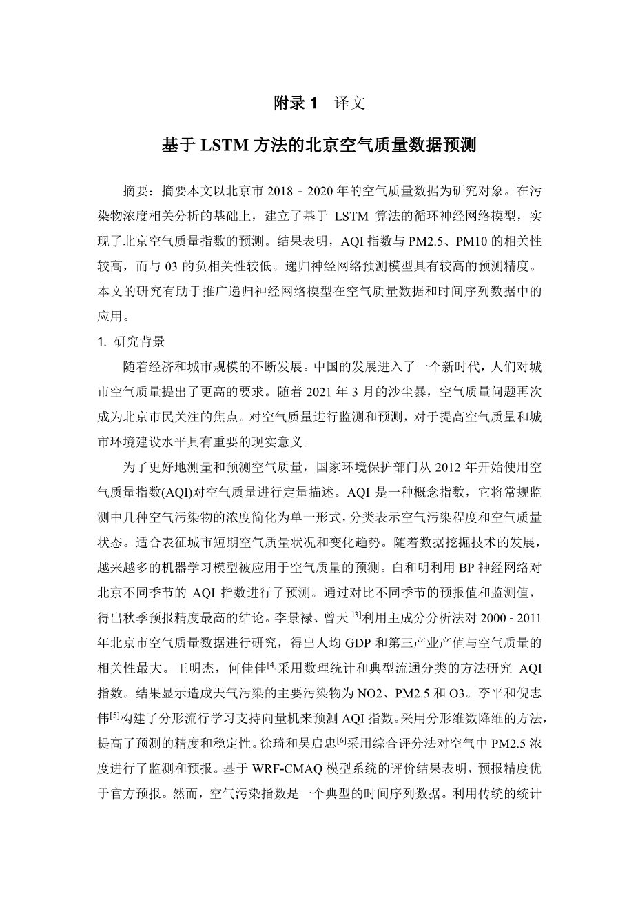 基于LSTM方法的北京空气质量数据预测外文翻译资料 2023-04-12 18:39:27 英语原文共 4 页,剩余内容已隐藏,支付完成后下载完整资料 英语译文共 4 页,剩余内容已隐藏,支付完成后下载完整资料 资料编号:[589741],资料为PDF文档或Word文档,PDF文档可免费转换为Word 原文和译文剩余内容已隐藏,您需要先支付 30元 才能查看原文和译文全部内容!立即支付 发小红书推广免费获取该资料资格。点击链接进入获取推广文案即可: Ai一键组稿 | 降AI率 | 降重复率 | 论文一键排版 PREVIOUS NEXT 您可能感兴趣的文章 管理信息系统外文翻译资料 老年人的营养和营养需求外文翻译资料 试卷自动生成系统的设计与实现外文翻译资料 JSP的技术发展历史外文翻译资料 微软.NET平台的介绍外文翻译资料 设置一个Servlet和JSP环境外文翻译资料 Java Servlet外文翻译资料 基于递归神经网络的会议识别语言建模外文翻译资料 基于社区结构的推荐算法和用户的信任外文翻译资料 边缘路径绑定:一种不太模糊的边缘绑定方法外文翻译资料
