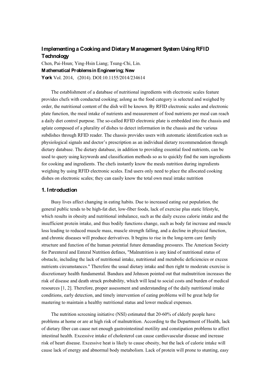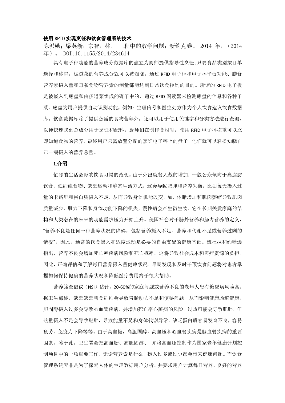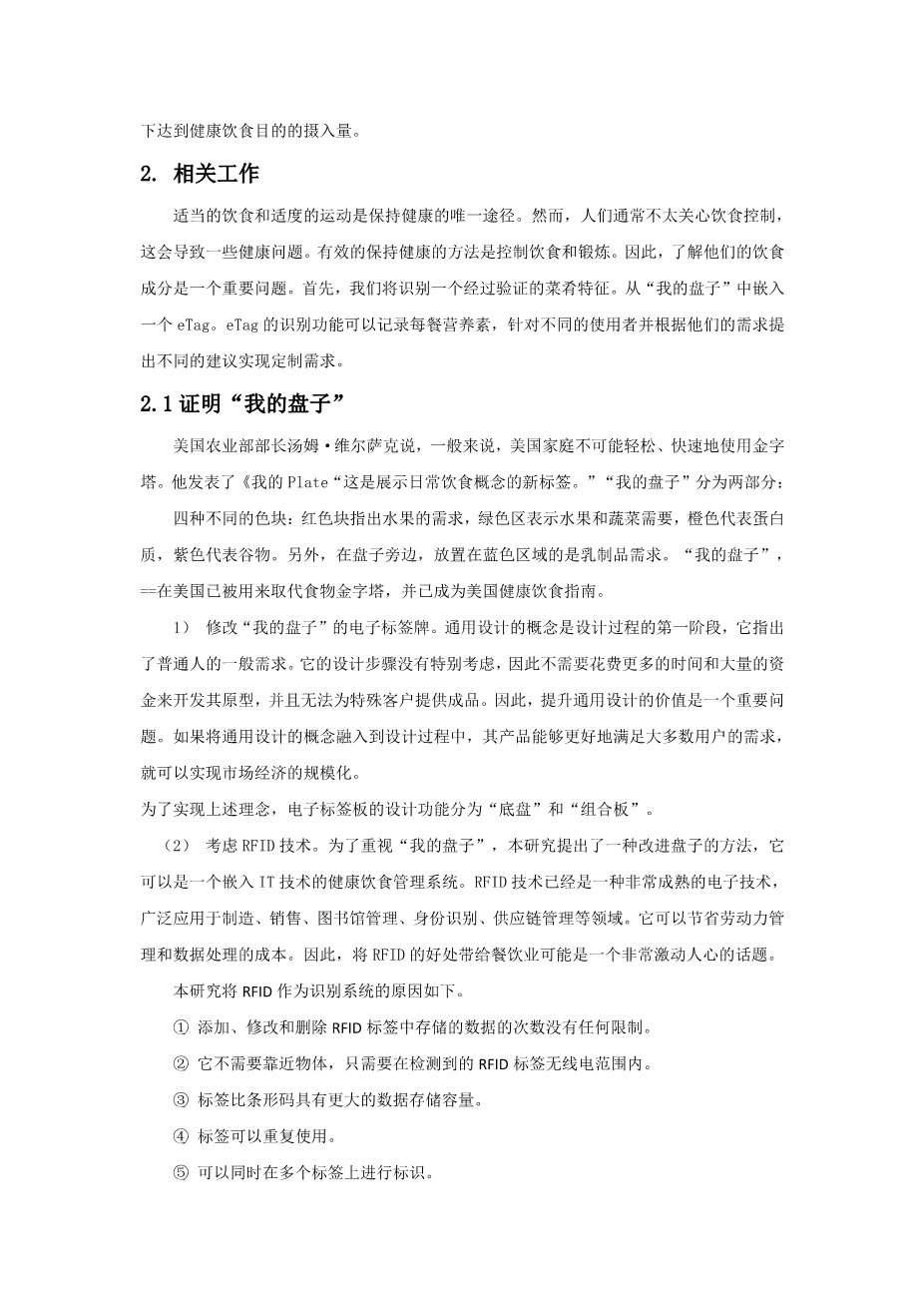 使用RFID实现烹饪和饮食管理系统技术外文翻译资料 2023-06-26 10:12:14 英语原文共 8 页,剩余内容已隐藏,支付完成后下载完整资料 英语译文共 7 页,剩余内容已隐藏,支付完成后下载完整资料 资料编号:[603412],资料为PDF文档或Word文档,PDF文档可免费转换为Word 原文和译文剩余内容已隐藏,您需要先支付 30元 才能查看原文和译文全部内容!立即支付 发小红书推广免费获取该资料资格。点击链接进入获取推广文案即可: Ai一键组稿 | 降AI率 | 降重复率 | 论文一键排版 PREVIOUS NEXT 您可能感兴趣的文章 管理信息系统外文翻译资料 老年人的营养和营养需求外文翻译资料 试卷自动生成系统的设计与实现外文翻译资料 JSP的技术发展历史外文翻译资料 微软.NET平台的介绍外文翻译资料 设置一个Servlet和JSP环境外文翻译资料 Java Servlet外文翻译资料 基于递归神经网络的会议识别语言建模外文翻译资料 基于社区结构的推荐算法和用户的信任外文翻译资料 边缘路径绑定:一种不太模糊的边缘绑定方法外文翻译资料