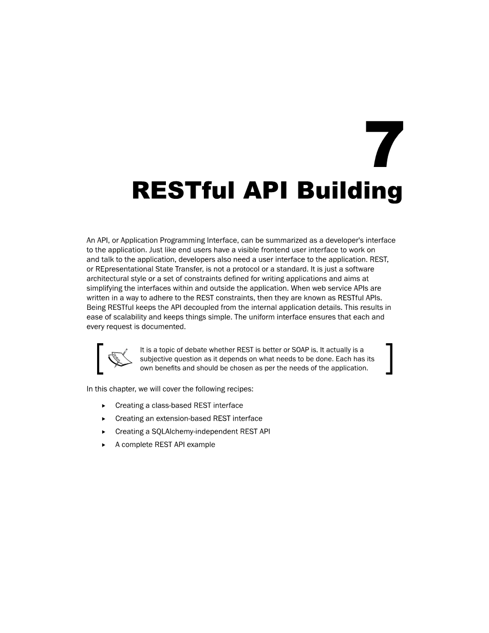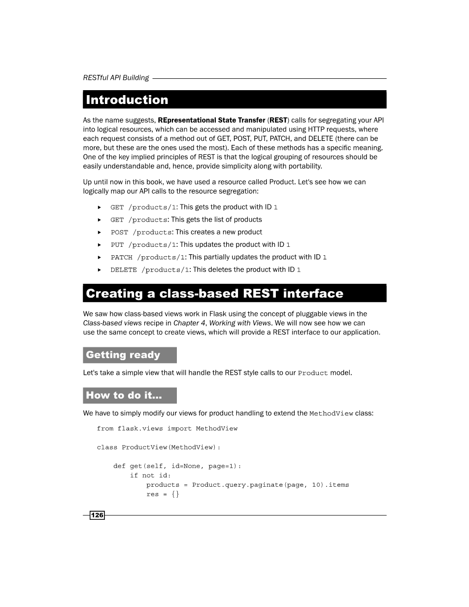我们看到了基于类的视图如何在Flask中使用在第4章“使用视图”中基于类的视图的工作过程。我们现在将看到我们如何做到使用相同的概念创建视图,这将为我们的应用程序提供REST接口。