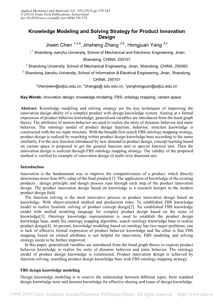 关键词:创新设计;知识建模;前沿系统;本体映射;变异空间