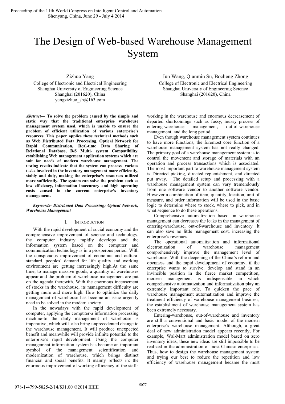 解决因简单而造成的问题,传统企业仓库的静态方式使用的管理系统,无法保证各类企业的有效利用问题、资源。本文应用这些技术方法,作为web分布式数据处理的光网络,快速通信,实时数据共享,关系数据库,B/S,多系统兼容性,建立web管理应用系统,适应现代仓储管理的需要。这个测试结果表明,该系统能处理各种各样的问题,更有效地参与库存管理的任务,稳定及时使企业资源得到充分利用。该系统可以解决诸如效率低,信息不准确,操作性差,在当前企业库存中产生的成本管理。