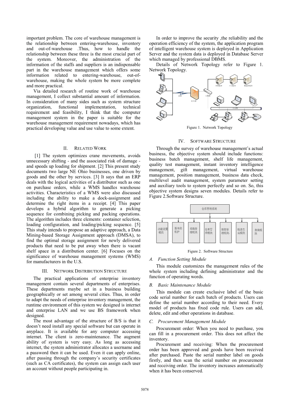 为了提高系统的安全性、可靠性和系统运行效率、应用程序,智能仓库系统在应用中的部署服务器和系统数据部署在数据库服务器中,由专业数据库管理系统管理。