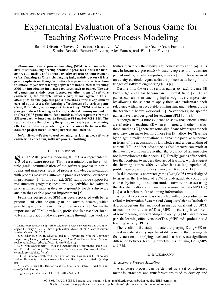 关于一种用于教学软件过程建模的严肃游戏的实验评价