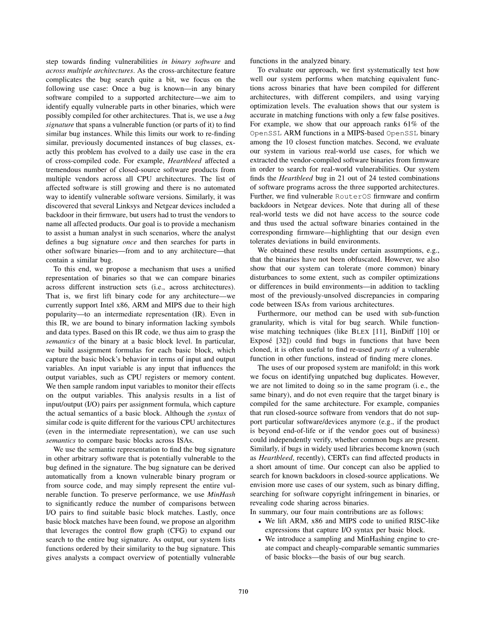 4. 我们经验性地证明了我们的方法在查找跨越体系结构的软件中多个现实存在的漏洞的可行性。
