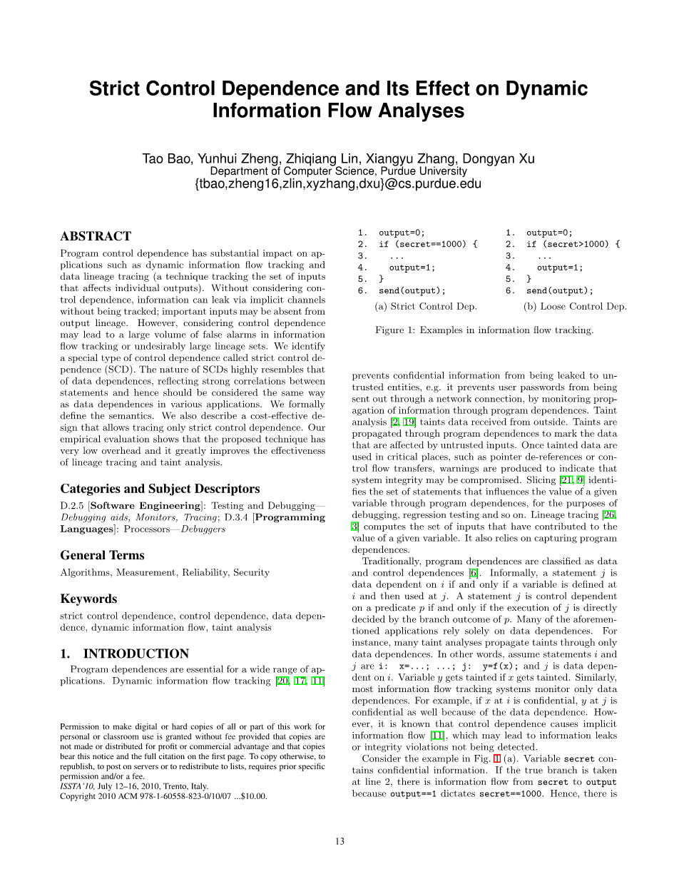 我们的观察结果是,虽然许多控制依赖性不应被考虑,否则,会引入假的信息泄露,但有一些控制依赖性,其特征与数据依赖的特征非常相似,因此应该以类似的方式去处理这种控制依赖。我们称其为严格的控制依赖(SCD)。大多数应用程序只考虑数据依赖的原因是数据依赖通常会造成强相关性。
