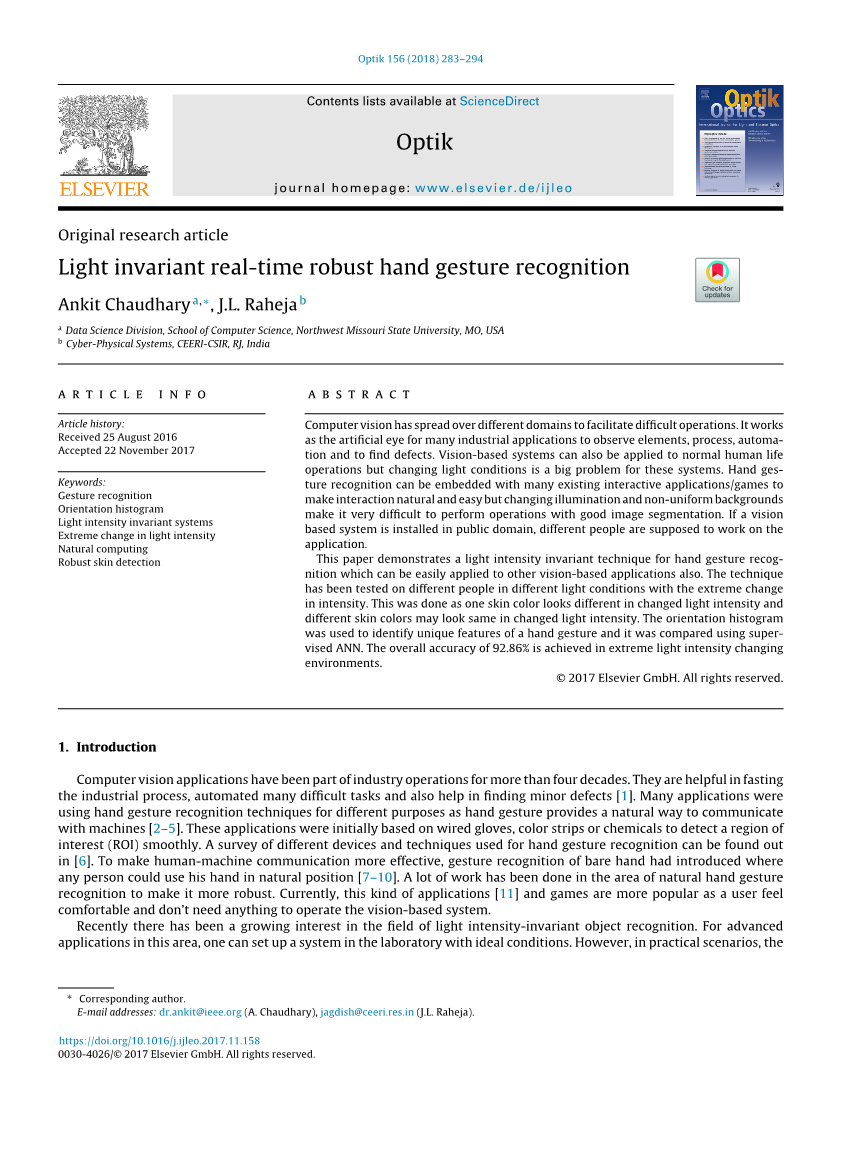 Ankit Chaudharya,lowast;, J.L. Raheja b
