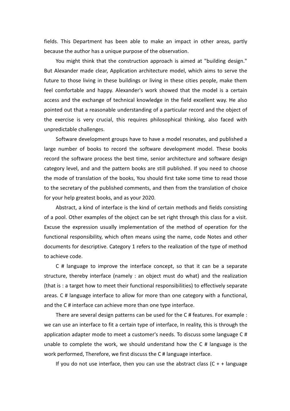 有好几个设计模式可以利用C#所提供的特征。例如:我们可以用一个接口来适配某个类的接口,这实际是通过应用适配器模式来满足一个客户的需求。为了讨论某些无法用C#语言完成的工作,我们应该了解C#语言是如何完成工作的,所以我们首先讨论C#语言的接口。