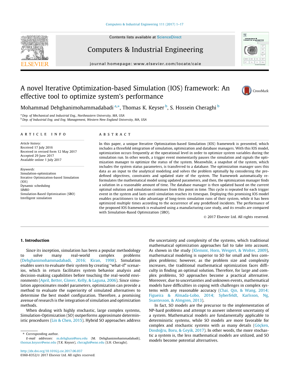 如上所述,所有以前的研究都显示了IOS的具体应用,并且它们都是根据预定义的用户需求定制和限制的。本研究旨在从某种意义上引入通用IOS框架,该框架可应用于任何具有任何优化要求的仿真模型。除模拟引擎外,根据模型设置和要求,可以在单次模拟运行中多次优化系统配置。