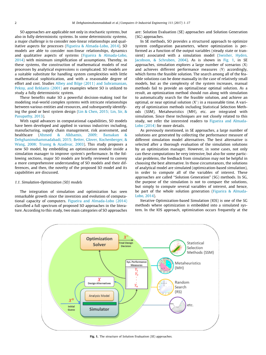 随着计算能力的快速发展,SO模型已经发展并应用于各个行业,如制造业,供应链管理,风险评估和医疗保健等等(Ahmed amp; Alkhamis, 2009; Bamakan amp;Dehghanimohammadabadi, 2015; Better, Glover, Kochenberger, amp;Wang, 2008; Truong amp; Azadivar, 2003)。这项研究提出了一个通过嵌入内涵模拟管理的优化模块来提高系统性能的新型SO模型,在下面部分中,主要的SO模型将被简要回顾来展示对于SO模型的更全面的理解,随后将讨论所提出的SO模型的创新点及其能力。