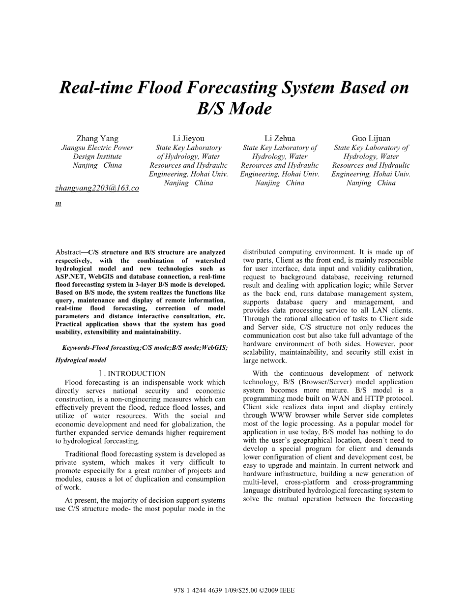 关键字--洪水预报;C/S模式;B/S模式;WebGIS;水文模型