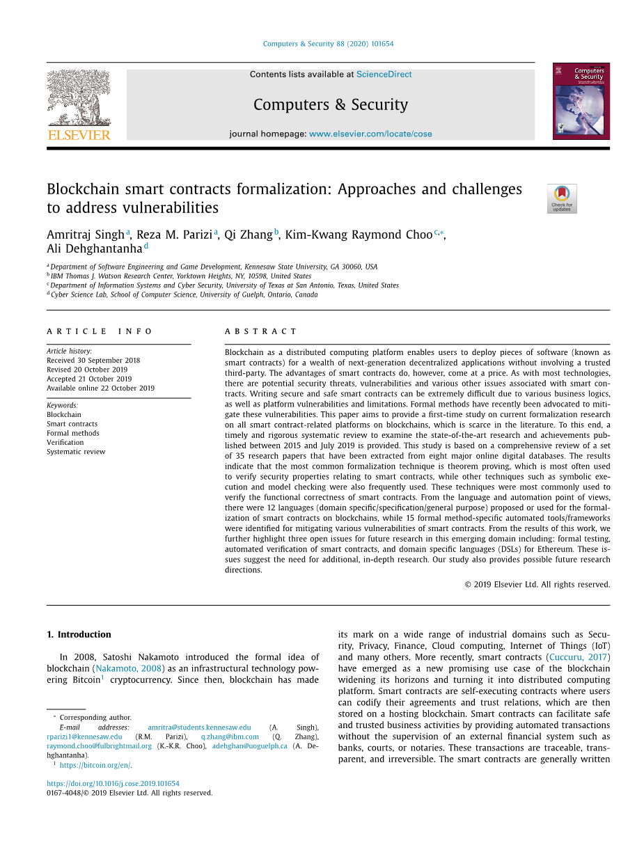 bull;分析形式化方法中与区块链智能契约相关的最常被研究的问题和漏洞。