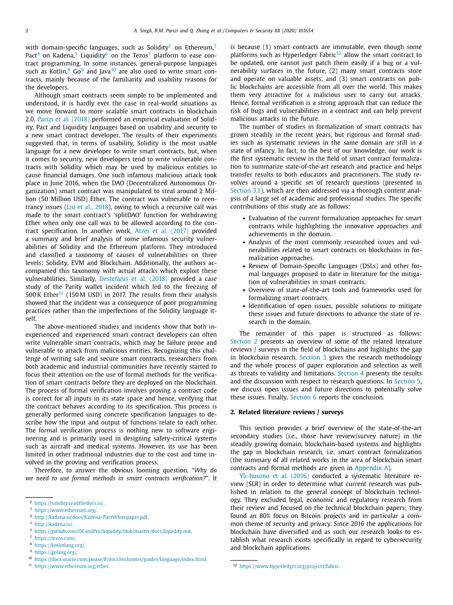 智能契约的自动验证,以及Ethereum的领域特定语言(dsl)。这些是- |