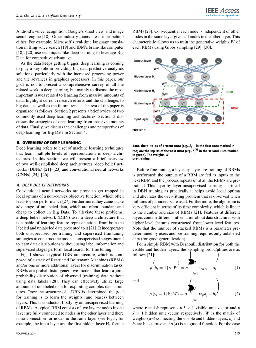 随着数据不断增长,深度学习在提供大数据预测分析解决方案方面将发挥关键作用,特别是随着处理能力的提高和图形处理器的进步。本文的研究目标不是对深度学习的所有相关工作进行全面的综述,而是主要探讨与海量数据学习相关的最重要问题,突出当前的研究工作和对大数据的挑战,以及未来的发展趋势。论文的其余部分安排如下。第2节简要回顾了两种常用的深度学习体系结构。第3节探讨了从海量数据中进行深度学习的策略。最后,我们在第4节讨论了大数据深度学习的挑战和前景。