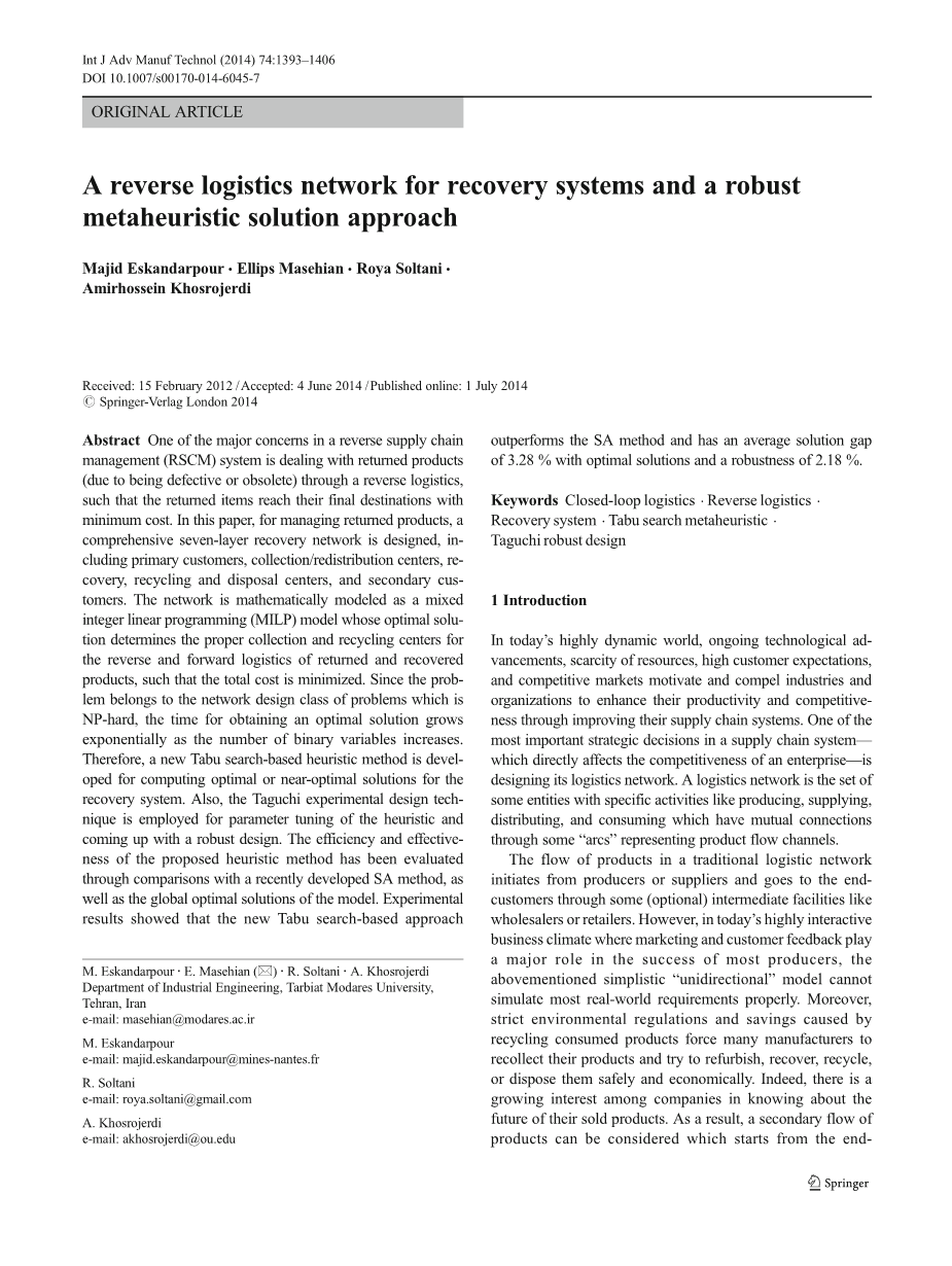 在本文中,一个混合整数线性规划(MILP)模型用于回收系统的逆向物流网络的数学表达。它所提出的模型可以应用于各种行业,如电子,计算机,汽车和飞机。同时,一个强大的Tabu搜索(TS)提出了求解该模型的启发式方法。本研究的主要贡献如下: