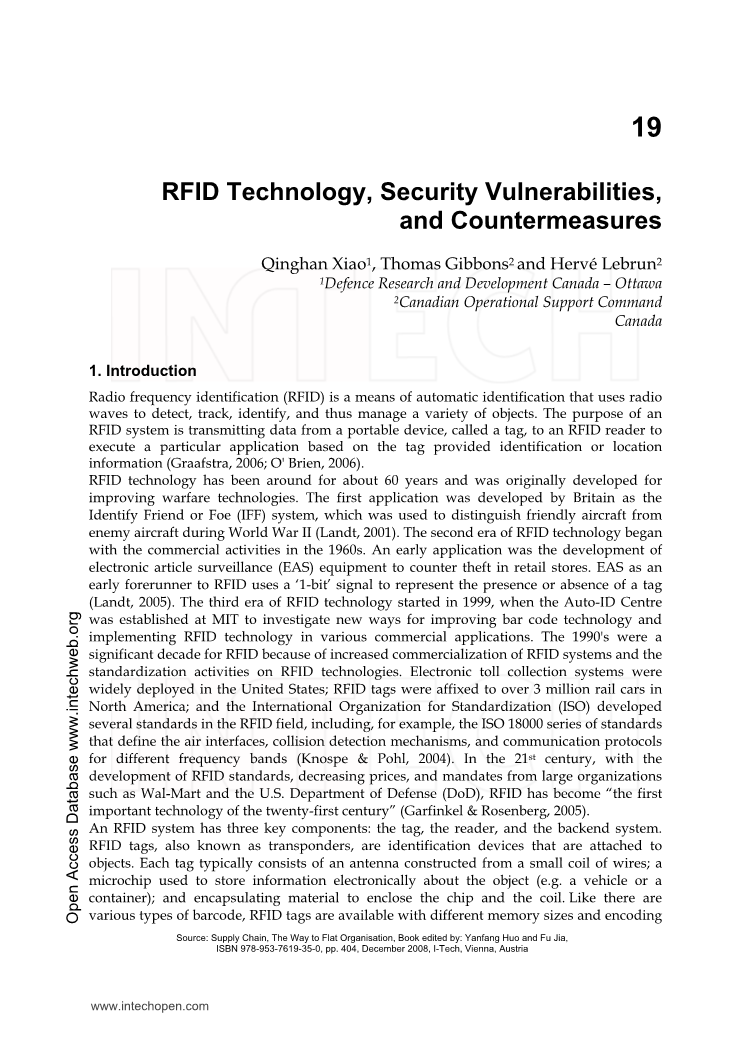 加拿大军队(CF)需要把消费品物流项目中的大量物资供给给军事行动中的坦克。为了应对物流资产的可视性、跟踪和可追溯性的挑战,加拿大业务支持指挥中心(CANOSCOM)已经应用了RFID技术给CF在国内外的行动提供有效和高效的支持。由CANOSCOM发起和资助的加拿大国防研究和发展部--渥太华(DRDC Ottawa),一直致力于RFID安全问题,如分析安全威胁和确定适当的对策。这一章是基于我们之前的主要研究成果,出版物和当前可用的文献。我们首先介绍了射频识别技术的概况,详细阐述了射频识别系统的基本组成和基本要点。接下来,我们分析了基础射频识别系统中存在的漏洞和安全威胁。然后,我们提出可能的对策来击败讨论的攻击,并提出了一些案例研究说明真正的攻击。最后,我们总结了本章关于未来研究方向的讨论。本章主要通过对射频识别系统中常见的安全漏洞和威胁的识别,并提出解决安全可能的对策,以提供信息和防御技术来对抗潜在的攻击。
