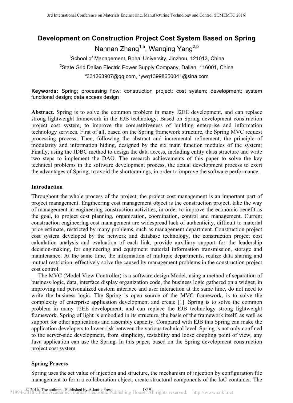 关键词: Spring; 处理流程; 建筑项目; 成本制度;发展; 系统功能设计; 数据访问设计