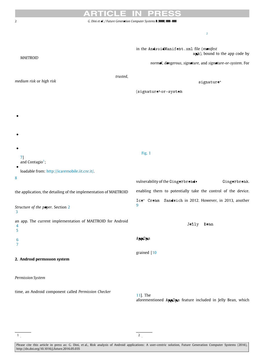 针对Android权限系统提出了几点批评。首先,该系统被认为太粗粒[ 10 ],因为用户只能选择是否接受所有的权限宣布由一个应用程序或拒绝安装应用程序。其次,用户通常不确定在一个应用程序是否可以信任是安全的或不。事实上,所需的权限列表是不是非常用户友好的,充分理解这种权限构成的风险是相当困难的。由于请求的权限的数量是相当大的,并且因为其中一些是很难理解的,一些用户简单地忽略他们时,安装一个新的应用程序,导致恶意的应用程序正在安装[ 11 ]。上述应用操作特征包括在果冻豆版本,它允许用户对已经安装的应用程序进行权限撤销,还提供了权限系统相关问题。事实上,任何时候应用程序试图执行的许可被撤销的操作,操作的权限检查否认。因此,自否认操作处理以来,应用程序可能会终止与误差(崩溃)。