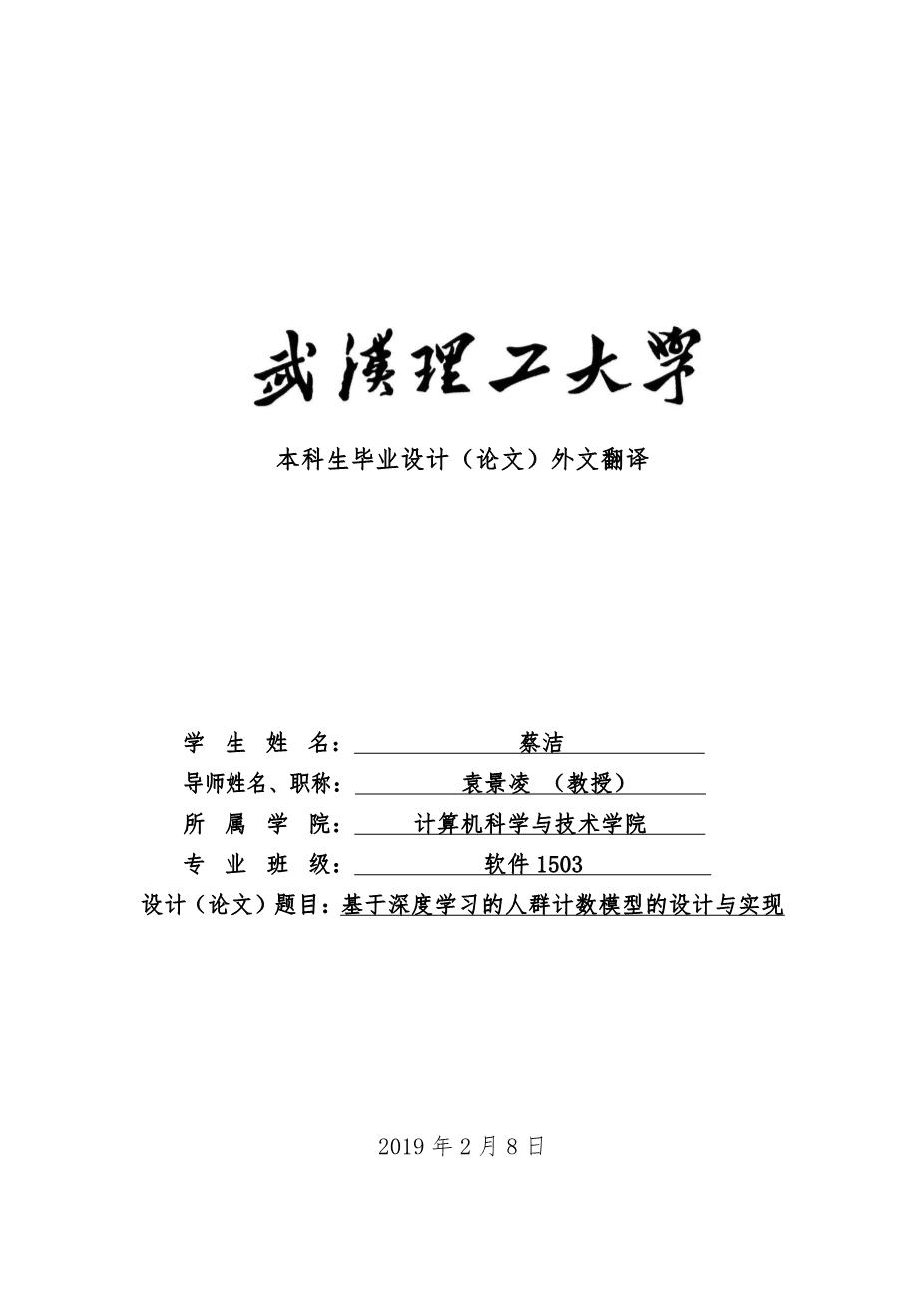 基于深度学习的人群计数模型的设计与实现外文翻译资料 2021-12-22 22:26:56 英语原文共 16 页 英语原文共 10 页资料编号:[3938] 原文和译文剩余内容已隐藏,您需要先支付 30元 才能查看原文和译文全部内容!立即支付 发小红书推广免费获取该资料资格。点击链接进入获取推广文案即可: Ai一键组稿 | 降AI率 | 降重复率 | 论文一键排版 PREVIOUS NEXT 您可能感兴趣的文章 使用金属伪影减少算法从 CT 数据生成的数字模型的准确性外文翻译资料 彩色光流外文翻译资料 云环境下基于虚拟机配置文件针对DDOS攻击的最优网络攻击探测方法外文翻译资料 监控大视频数据分析中的模糊逻辑: 综述、挑战和研究方向外文翻译资料 PeopleSoft人力资源管理系统实施外文翻译资料 图像绗缝的纹理合成与转移外文翻译资料 管理云中的资源:Chrome扩展到OpenStack外文翻译资料 一种基于凸显区域检测和SPBVM的美学QR码新算法外文翻译资料 微信小程序-所有你需要知道外文翻译资料 Java核心技术卷II高级特性外文翻译资料