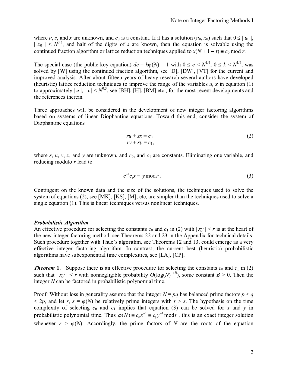 假设s和t是N重要的奇因数,且st = N,、sle;t。我们可以发现x和y, s = (x-y)和t = (x y)。解这个方程,我们发现x = (s t) / 2, y = (t - s) / 2。这里x和y是整数,因为任意两个奇数的差都是偶数,而偶数能被2整除。在sgt;1和tge;s的条件发,我们发现xge;1,yge;0。为特定的x, y满足s = (x,-y)和t = (x y),因此我们i道,x =radic;N ysup2;,因此xge;radic;N。另外,Xle;(s t)/ 2le;2 t / 2le;N。对于一个算法,我们选择x1=lceil;radic;Nrceil;,并且xi 1=xi 1。对于每一个i,我们检查是否yt=radic;xisup2;-N是一个整数,是否 (xi yi)(xi-yi)是重要的因素,如果这两个条件,我们返回的重要因素。否则,我们继续到下一个i,一旦xi= N则退出。