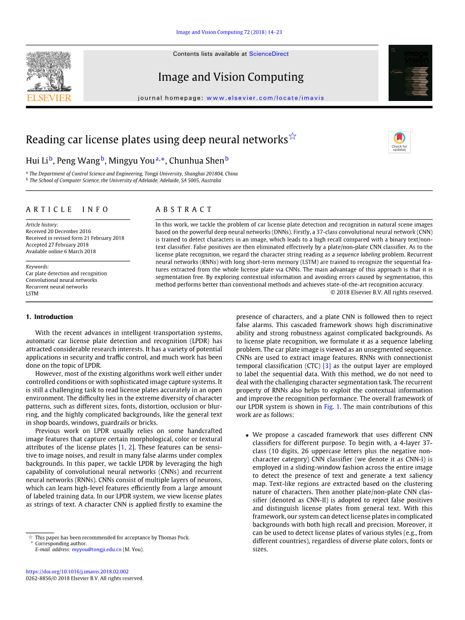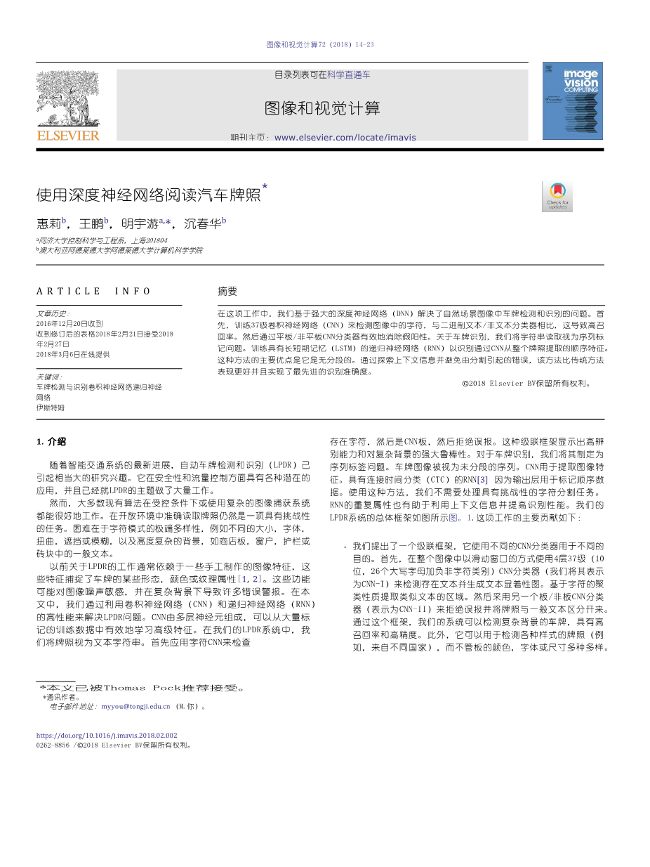 多数据源及多目标的车牌识别研究及实现外文翻译资料 2022-01-08 20:37:42 英语原文共 10 页,剩余内容已隐藏,支付完成后下载完整资料 英语原文共 10 页,剩余内容已隐藏,支付完成后下载完整资料资料编号:[1860] 原文和译文剩余内容已隐藏,您需要先支付 30元 才能查看原文和译文全部内容!立即支付 发小红书推广免费获取该资料资格。点击链接进入获取推广文案即可: Ai一键组稿 | 降AI率 | 降重复率 | 论文一键排版 PREVIOUS NEXT 您可能感兴趣的文章 使用金属伪影减少算法从 CT 数据生成的数字模型的准确性外文翻译资料 彩色光流外文翻译资料 云环境下基于虚拟机配置文件针对DDOS攻击的最优网络攻击探测方法外文翻译资料 监控大视频数据分析中的模糊逻辑: 综述、挑战和研究方向外文翻译资料 PeopleSoft人力资源管理系统实施外文翻译资料 图像绗缝的纹理合成与转移外文翻译资料 管理云中的资源:Chrome扩展到OpenStack外文翻译资料 一种基于凸显区域检测和SPBVM的美学QR码新算法外文翻译资料 微信小程序-所有你需要知道外文翻译资料 Java核心技术卷II高级特性外文翻译资料