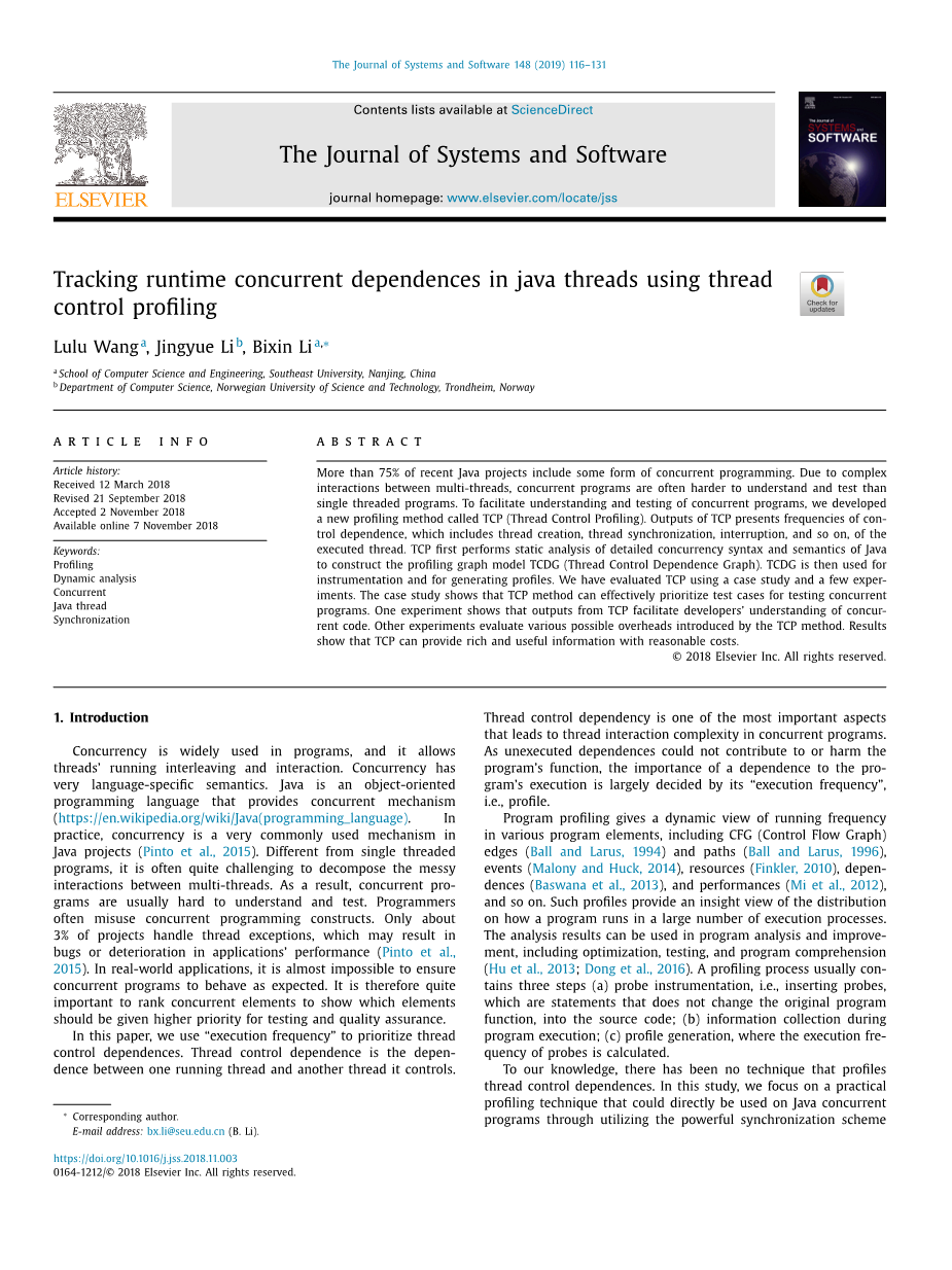 --Lulu Wanga, Jingyue Li b, Bixin Li a,lowast;