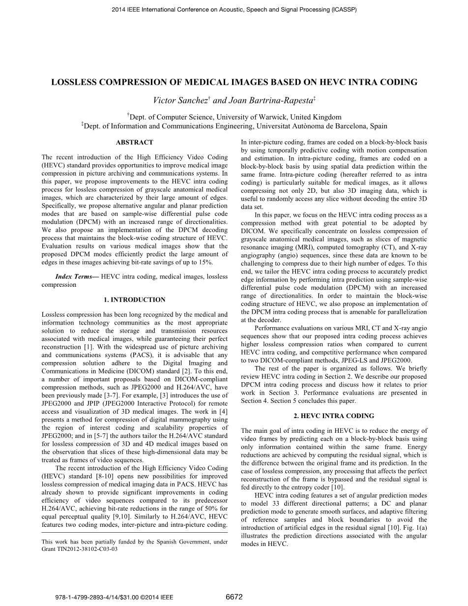 在本文中我们重点关注HEVC的帧内编码过程,作为一种图像压缩技术,它具有重大的潜力并很可能在将来被DICOM所采用。我们特别注意显现解剖结构的医学灰度图像的无损压缩,例如磁共振图像,CT图像,X线血管造影图像。这些图像都因具有数量巨大的边缘而引起了人们对于压缩这些图像的兴趣。基于此并通过使用定向性加大的差分脉冲编码调制技术,我们提出了HEVC帧内编码的处理方法,并将此方法用于精确预测图像的边缘信息。为了保持HEVC的按块编码结构,我们还提出了一种能够满足解码端并行计算要求的差分脉冲编码调制帧内编码的技术。对于不同的磁共振图像,CT图像,X线血管造影图像,在与当下的HEVC帧内编码技术比较时,我们提出的方法显著提高了图像的压缩率。在与JPEG-LS和JPEG2000这两种兼容DICOM系统的技术比较时该方法也显现出来巨大的竞争力。