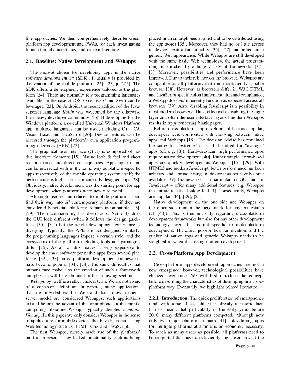 1.请注意,我们引用了几项非科学作品,甚至包括视频。这是为了保持最新的发展。我们当然仔细审视这些作品。事实上,文献情况是第4节中几个未解决问题的部分原因;具体请参阅第4页第4.2节。 7。线路方法。然后我们全面地描述跨平台应用程序开发和PWA,每个调查基础,特征和当前文献。
