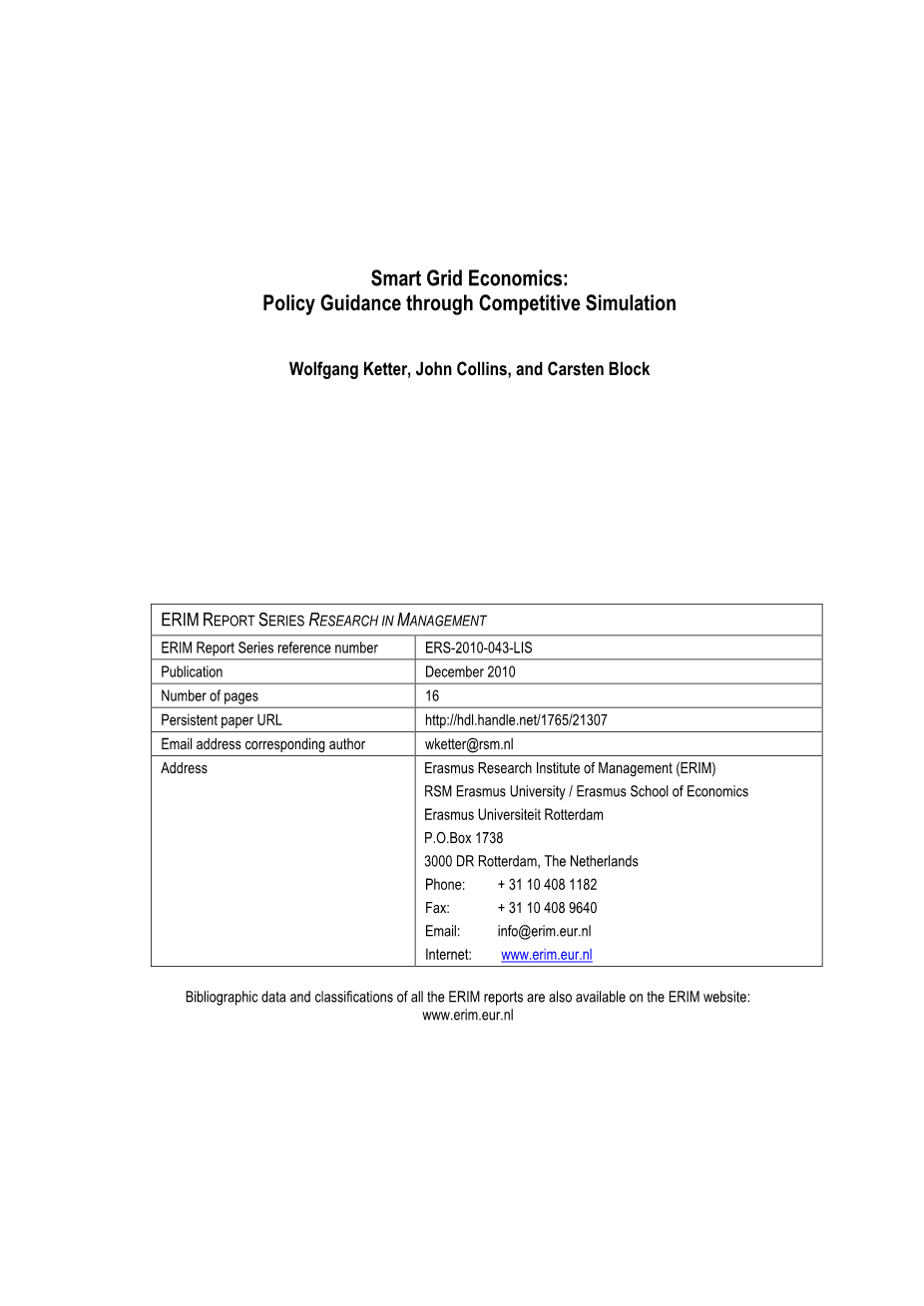 电力生产和分配系统是复杂的自适应系统,需要实时管理以平衡生产与需求。电力市场正在从中央监管体系向分散化市场转变[11]。由于我们没有足够的经验来建立分散的能源系统并预测它们对经济的影响,所以这些转变是非常危险的。我们在最近的历史中观察到,设计这些系统的失败可能会造成重大损害。加州能源市场[4]和安然公司的崩溃让人怀疑解除对电力行业的管制是否明智,并且证明竞争性电力市场的成功关键取决于市场设计,需求响应,能力储备,财务风险管理和可靠性控制电力供应链。因此,在将这些想法应用到现实世界之前,在无风险的模拟环境中彻底测试系统和市场设计建议非常重要。