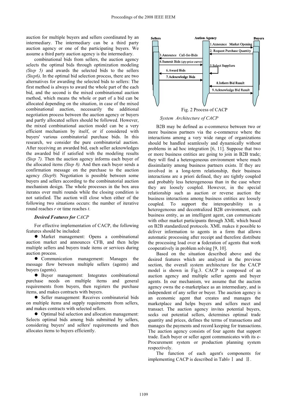 B2B被定义为两个或更多商业伙伴通过电子商务的电子商务,在这种情况下很多组织之间的交互应该被无缝且动态地处理避免临时集成问题的出现。假设两个或更多的企业实体要加入B2B贸易,他们会发现在异质的环境中商业伙伴之间存在很多不同。如果他们涉及长期关系,他们的业务交互是先验定义的,他们是紧密耦合的,可能比他们松散耦合的情况下更少异构。然而在如拍卖和反向拍卖这样特殊的关系中,商业实体之间的商业交互是松耦合的。为了支持异构和分散的B2B环境中的互操作性,作为智能代理的每个商业实体都可以通过基于B2B标准化协议的XML与其他市场参与者进行通信。XML使得以一种允许在接收后自动处理的形式向代理传递信息成为可能,并且因此将处理负载分布在协作解决问题的代理联盟上。