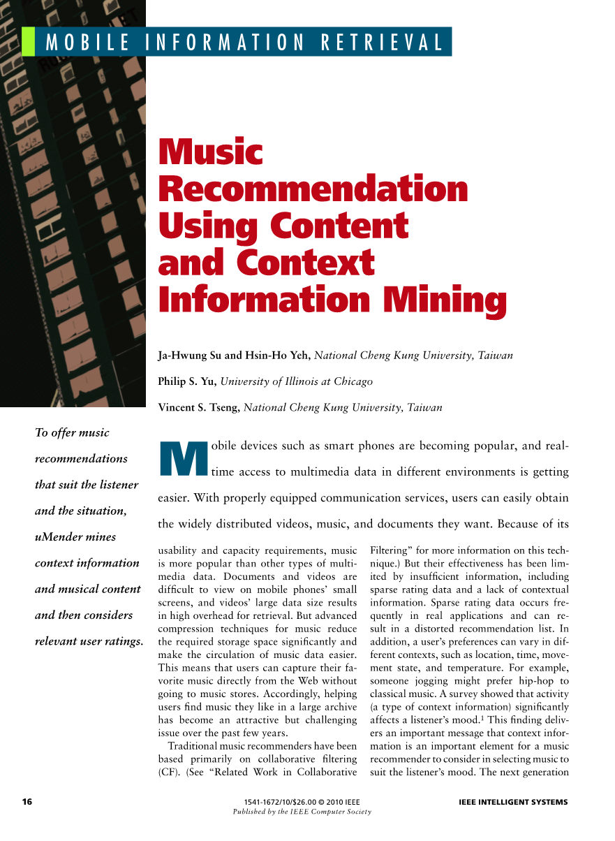 使用内容和上下文信息挖掘的音乐推荐外文翻译资料