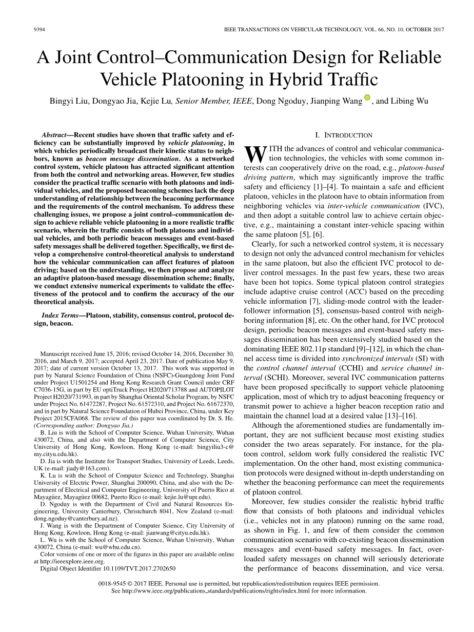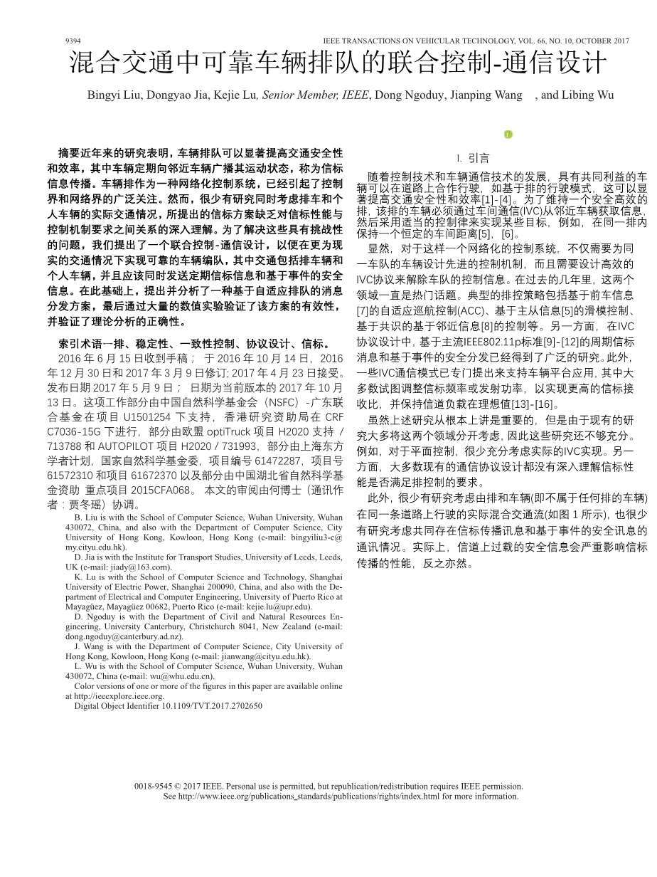 混合交通中可靠车辆排队的联合控制-通信设计外文翻译资料