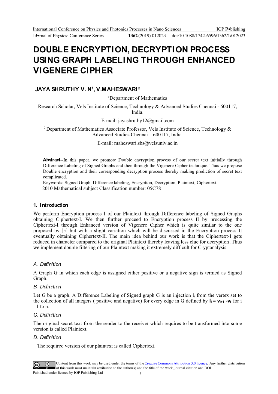 摘要-本文首先通过对有符号图的差分标记,然后通过vigener密码技术,对我们的秘密文本进行双重加密。。因此,我们提出了双重加密及其相应的解密过程,从而使秘密文本的预测变得复杂。