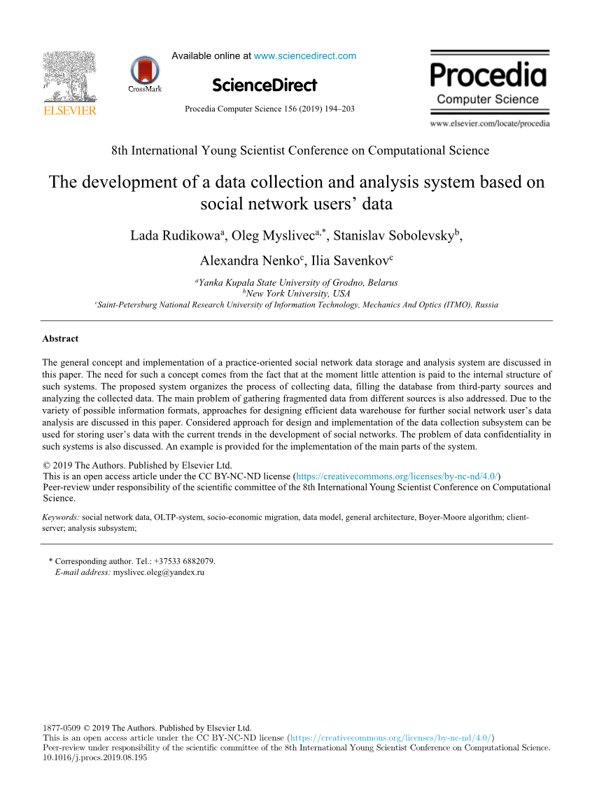 尽管世界各地积累了大量信息,但这些数据通常是零散的,并且远不能提供有关社会生活的一般概述。由于缺乏软件界面和特定的数据存储格式,可公开获取的数据源(在我们的案例中是社交网络)并不总是易于处理的。这些限制通常不允许在执行必要的数据分析时使用可用的信息。数据格式和供应策略的频繁更改仍然是一个主要问题。此外,以第三方可以访问的形式可视化存储数据的问题非常相关,并且与数据分析本身同样重要。