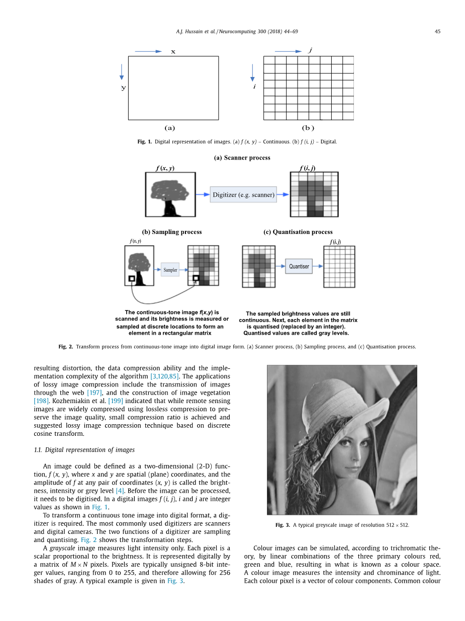 图像是重要代表。它们可以代表传输的电视-卫星画面的传输,医学影像或计算机画面的存储等等[190]。当对二维光强信号进行采样和量化以生成数字图像时,会产生大量的数据,这使可能数字化图像的尺寸过大,导致不切实际的存储或传输要求。图像压缩通过减少图像中的信息处理这个问题,从而使图像的传输或存储要求更符合实际。
